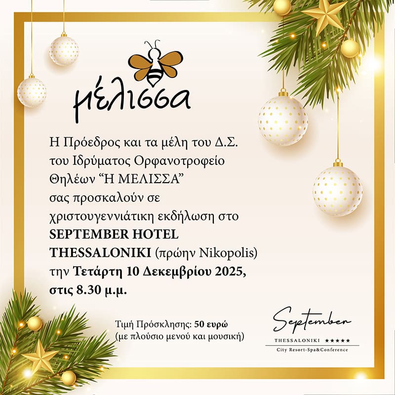 Το 1921 ιδρύεται το Σωματείο ΟΡΦΑΝΟΤΡΟΦΕΙΟ ΘΕΣΣΑΛΟΝΙΚΗΣ "Η ΜΕΛΙΣΣΑ". Το επόμενο έτος δέχεται τα πρώτα ορφανά παιδιά από τη Μικρασιατική Καταστροφή. Από το 1940 συνεχίζει τη λειτουργία της ως Ορφανοτροφείο Θηλέων μέχρι και σήμερα, φιλοξενώντας κορίτσια που στερούνται τη γονική παρουσία για οποιοδήποτε λόγο.
